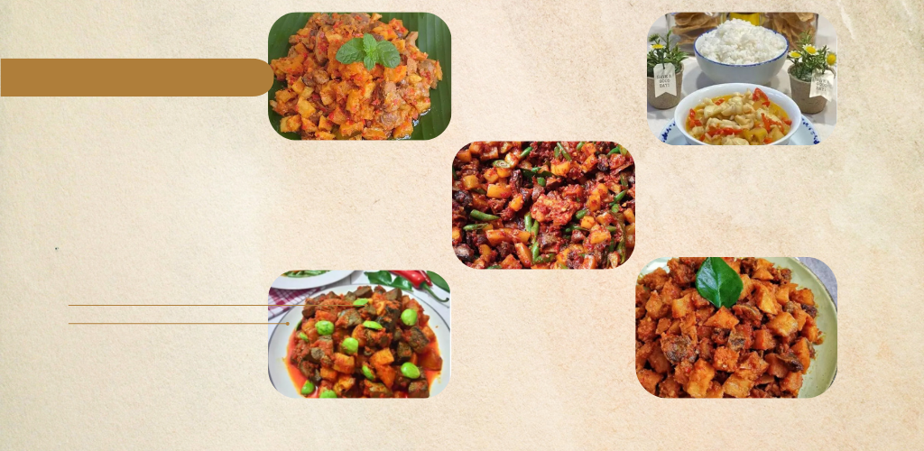 Sambal Ati Beef Potato Balado: Một sự kết hợp không thể đánh bại giữa thịt bò sambal ati và khoai tây balado mang đến hương vị thơm ngon của thịt bò và vị cay cay của khoai tây balado. Món ăn này làm đầu lưỡi kinh ngạc và mang lại cảm giác như đang thưởng thức những hương vị hòa quyện một cách hoàn hảo.