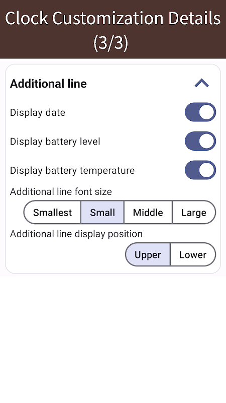 Trong cài đặt, bạn có thể đặt phông chữ, kích thước, vị trí hiển thị và nền của đồng hồ.