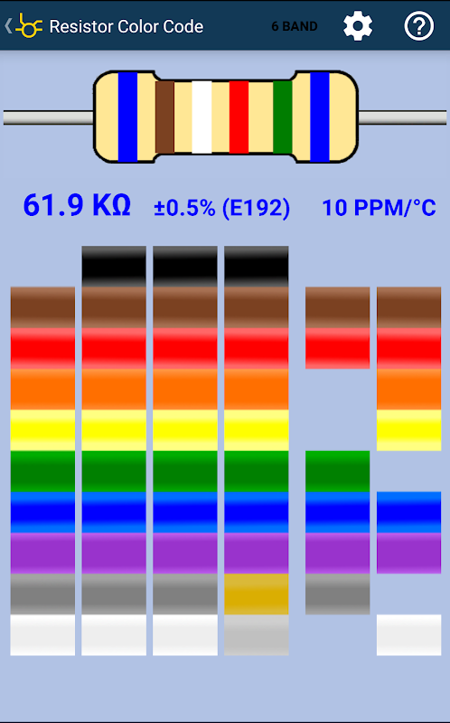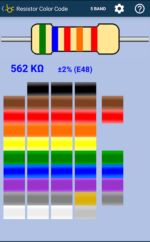 Tính toán giá trị điện trở bằng cách chọn màu sắc ban nhạc.
