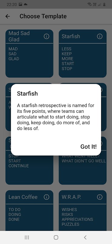 Retrospective meeting format contents have been added to "Choose Template" page in order to be understandable templates.