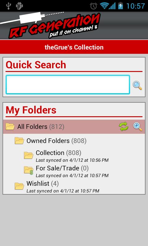 Access and edit your RF Generation video game collection on the go, or search their massive database of game and hardware information. Want to get your collection set up quickly? Use the bar code scanner to add games to your collection without having to type them all in!