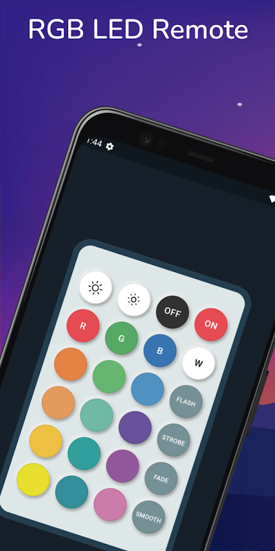 Điều khiển đèn RGB bằng điện thoại thông minh của bạn bằng ứng dụng đơn giản và mạnh mẽ này. Được thiết kế cho điện thoại hỗ trợ IR, nó cho phép bạn quản lý đèn RGB, điều chỉnh độ sáng, thay đổi màu sắc và thậm chí thay thế bộ điều khiển LED RGB bị mất Bluetooth hoặc điều khiển từ xa LED truyền thống. Cho dù bạn đang tìm kiếm một ứng dụng RGB để điều khiển bộ điều khiển ánh sáng RGB hay quản lý điều khiển từ xa của bóng đèn RGB, thì ứng dụng này đều đáp ứng được nhu cầu của bạn. Với giao diện dễ sử dụng và chế độ ban đêm, bạn có thể điều khiển đèn dải LED, đèn hoặc các thiết bị điều khiển ứng dụng RGB khác một cách thuận tiện. Đảm bảo điện thoại của bạn có IR blaster để tận hưởng đầy đủ chức năng của ứng dụng điều khiển từ xa có đèn LED này.