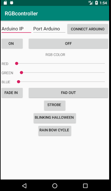 Ứng dụng được kết nối với arduino và với sự trợ giúp của nó, chúng ta có thể chọn màu của dải LED RBG.