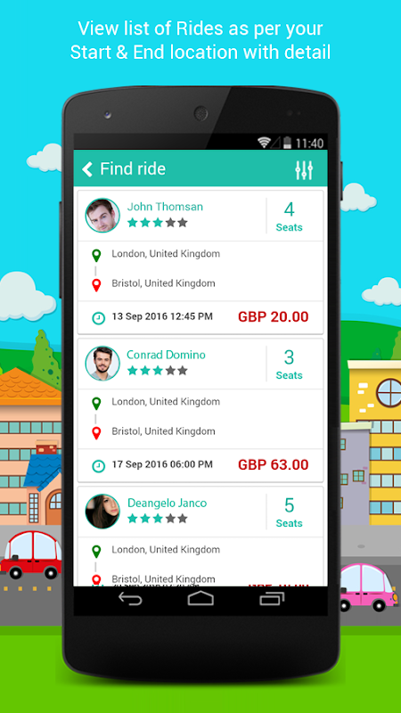 Thông qua ứng dụng này, các thành viên của bạn có thể đăng các chuyến đi khi họ đang đi từ địa điểm này đến địa điểm khác. Các hành khách có thể tìm kiếm và lọc các chuyến đi và đặt một cái họ thích. Chế độ thanh toán có thể được đặt thành trực tuyến hoặc ngoại tuyến theo các tùy chọn bạn chọn. Ứng dụng có thể được tùy chỉnh để có ngôn ngữ và ngôn ngữ địa phương của bạn.