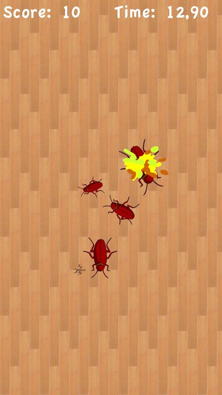 You have 30 seconds to kill the roaches on the screen. Each kill adds to your timer, but if you miss and ruin the floor you will lose two seconds. The game is over when you run out of time.