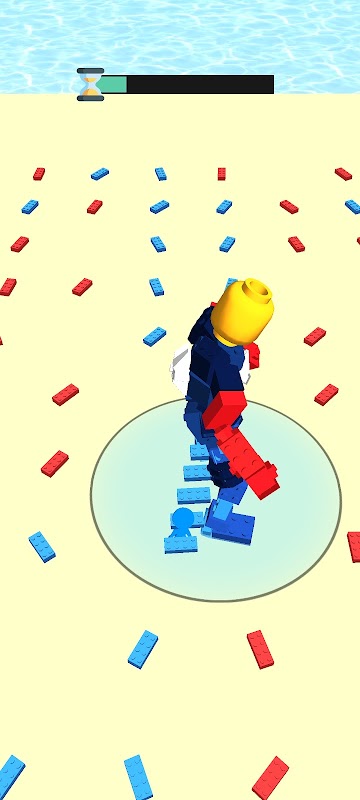 Hurry up in collecting blocks so that your robot becomes stronger and can fight back against the opponent!