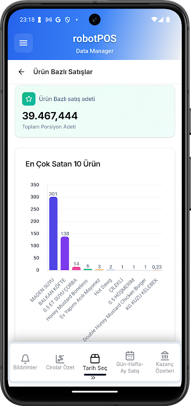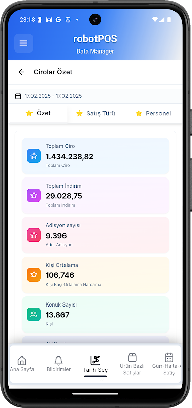 Robotpos Data Manager uygulaması şubelerde gerçekleşen ciroları anlık olarak mobile uygulama üzerinde görüntüleyebildiğiniz bir mobile app uygulamasıdır.