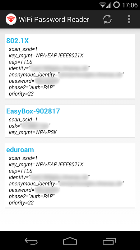 Wi-Fi Password Reader allows you to read out your stored Wi-Fi-network details.