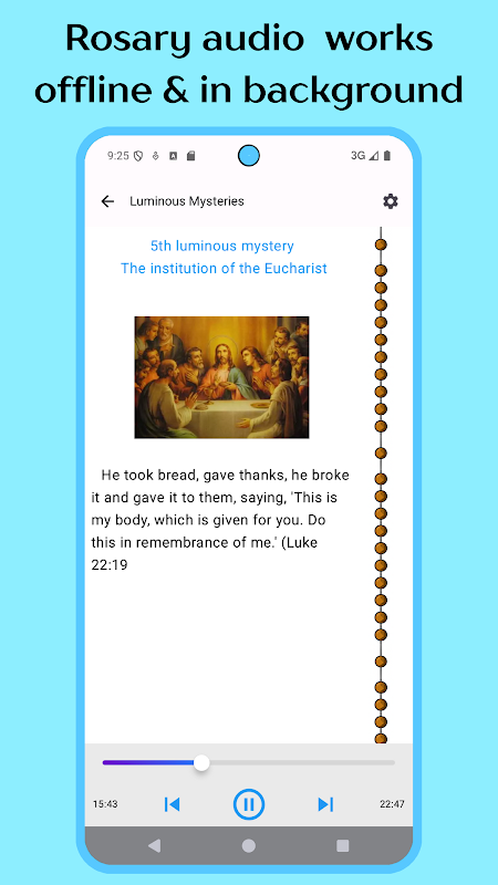 * Tính năng Bead Counter của ứng dụng kinh Mân Côi này cung cấp một cách đơn giản và hiệu quả để tập trung vào các mầu nhiệm hàng ngày.