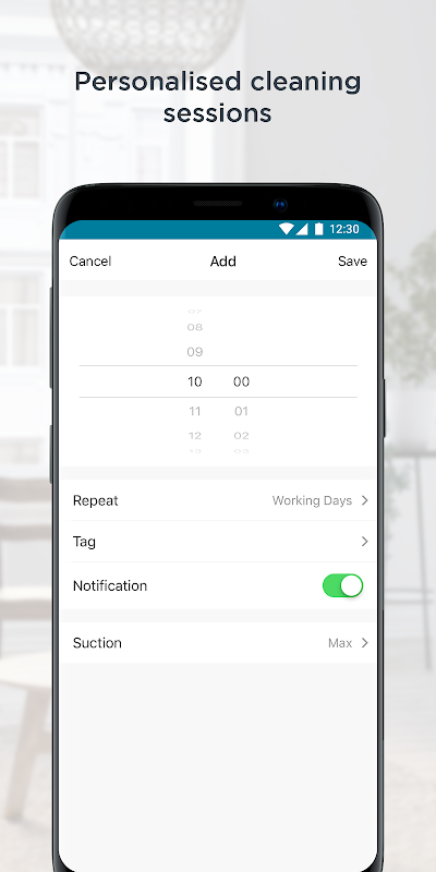 - Điều chỉnh lực hút làm sạch robot của bạn tùy thuộc vào phòng và tầng nơi nó ở