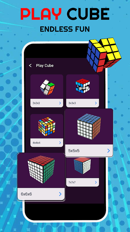 🔹 Hỗ trợ nhiều loại khối lập phương – Từ trình giải khối lập phương 3x3 đến các khối lập phương nâng cao.