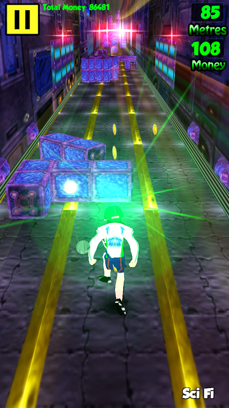In Speed Run Mode you have to hit boost pads to speed up your run and see how far you can run before the time runs out. You can collect more time but also watch out for minus time items and slow pads that slow your run down!