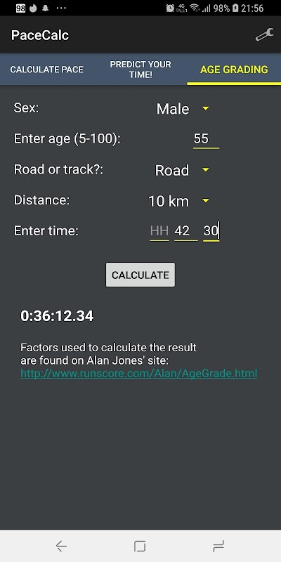 Cũng bao gồm một máy tính được phân loại độ tuổi sử dụng các bảng WMA (World Masters Athletics) / WAVA để tính kết quả phân loại độ tuổi.