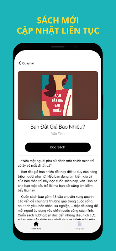 Sách có thể được coi chính là kho tàng tri thức lớn nhất và giá trị nhất của loài người, cung cấp cho chúng ta không chỉ kiến thức, mà còn các bài học cuộc sống, kinh nghiệm sống, đồng thời cũng là phương tiện giải trí khá hiệu quả. Vậy nên đọc sách hằng ngày luôn là việc mà ai cũng khuyến khích thực hiện. Bạn hãy thử thay đổi thói quen bằng việc đọc sách ngay hôm nay với ứng dụng của chúng tôi nhé!
