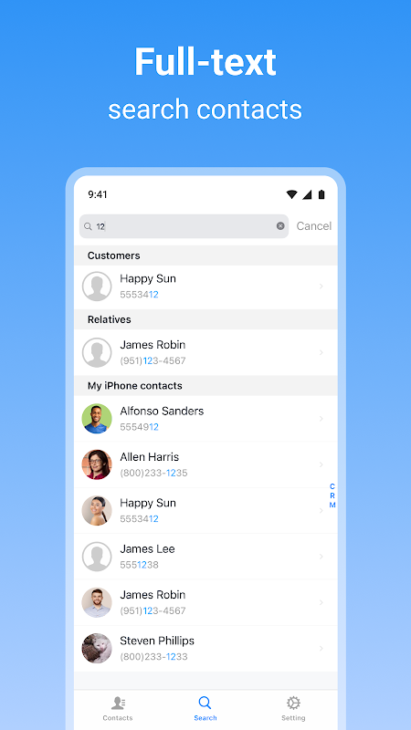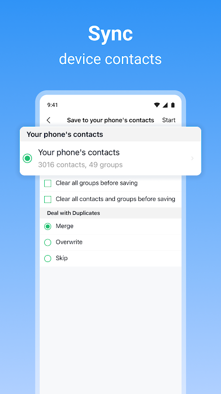 Lưu bản sao cục bộ theo thời gian thực của danh bạ điện thoại. Các thay đổi được đồng bộ tự động, do đó dữ liệu của bạn luôn an toàn.