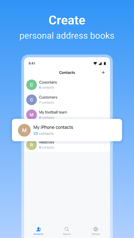 Tạo nhiều sổ địa chỉ cho các mục đích khác nhau. Nhập hoặc xuất danh bạ dễ dàng trên nhiều thiết bị và định dạng.