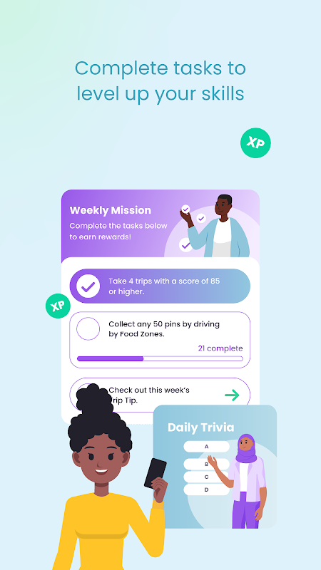 • Xây dựng thói quen tốt hơn: Tích lũy thành tích nhờ lái xe an toàn và duy trì động lực nhờ các tính năng xây dựng thói quen.