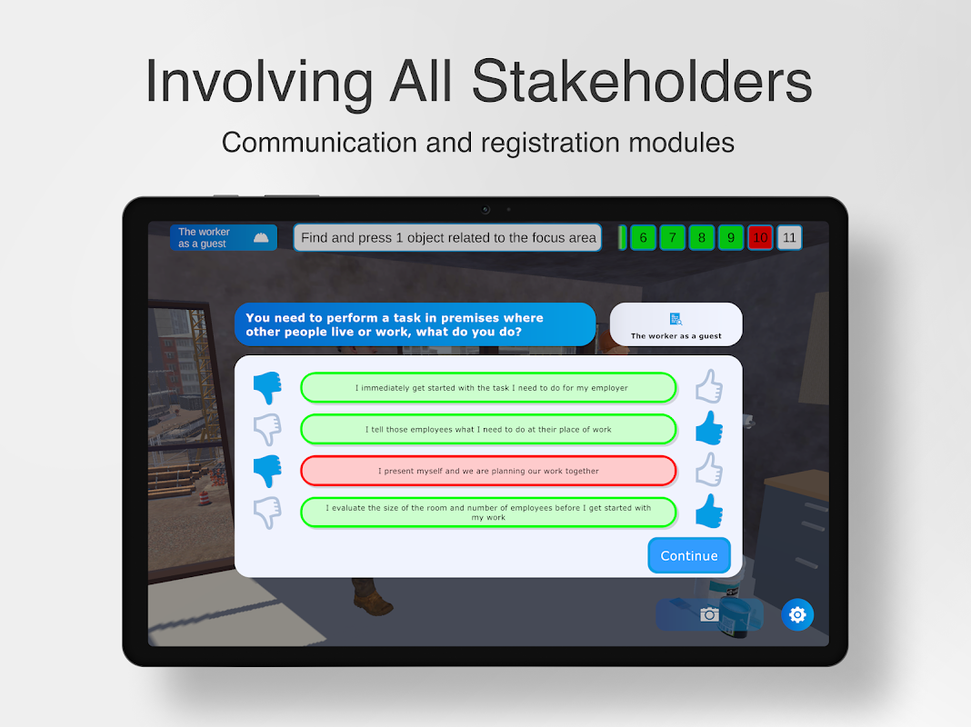 Yếu tố chính trong Ứng dụng là phần giới thiệu an toàn trang web hiệu quả, hấp dẫn và dựa trên 3D dựa trên các mô hình Gamification và BIM.