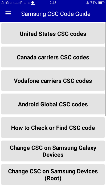 CSC là viết tắt của Hướng dẫn mã cụ thể theo quốc gia. Nó là đặc biệt cho mọi u. S. MỘT . Hoặc địa điểm hoặc nhà cung cấp cộng đồng. Tại đây, chúng tôi đã tạo danh sách tất cả CSC hoặc Hướng dẫn mã sản phẩm cùng với các quốc gia thống nhất của Hoa Kỳ hoặc nhà cung cấp dịch vụ mà nó thuộc về. Về cơ bản, chúng tôi đã phân loại Multi-CSC thành 4 thành phần. Đầu tiên thuộc về các nhà mạng viễn thông khác nhau bên trong Hoa Kỳ như Sprint, AT&T, T-Mobile, Verizon, v.v. Thứ hai và thứ ba bao gồm các nhà cung cấp dịch vụ tương tự ở Canada và Vodafone. Cuối cùng, chúng tôi đã lập chỉ mục các phiên bản toàn cầu hoặc quốc tế.