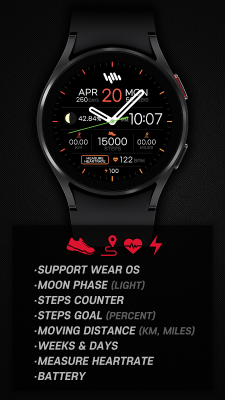 WatchFace có pin, bộ đếm kim bấm và đo nhịp tim.