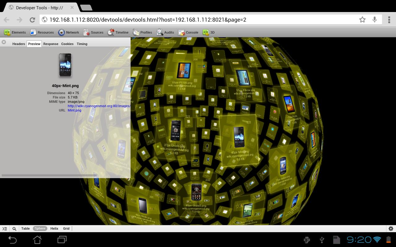 Using Chrome Developer Tools remote web gui for display data.