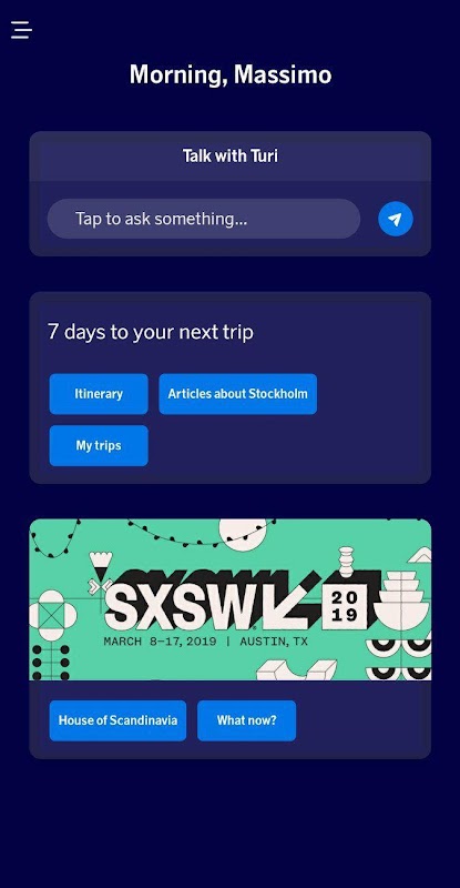 By way of introduction, the up-to-the-minute app features our digital travel assistant Turi! Much more than simply a digital assistant, Turi goes to work 24 hours before your journey begins and remains by your side, helping you all the way through baggage claim. Turi ensures you never travel alone! Turi was created using state-of-the-art Artificial Intelligence (AI) that is constantly learning and improving - just like we are. The more questions you ask Turi, and the more feedback you give her - the better she’ll become at assisting you. Give her a try – you won’t want to fly without her again.