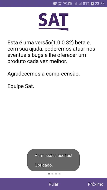 Ứng dụng Sat có sẵn để tải xuống trong bản beta và với sự giúp đỡ của bạn, chúng tôi có thể xử lý mọi lỗi và cung cấp cho bạn một sản phẩm thậm chí còn tốt hơn. Cảm ơn bạn đã hiểu biết của bạn.
