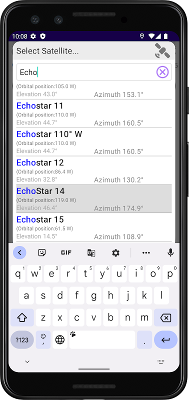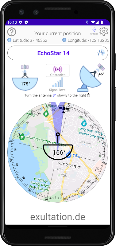 Ứng dụng này giúp căn chỉnh đĩa vệ tinh của bạn. Dựa trên vị trí của bạn và vệ tinh đã chọn, ứng dụng sẽ hiển thị cho bạn hướng ngang và dọc mà bạn phải căn chỉnh đĩa vệ tinh của mình.