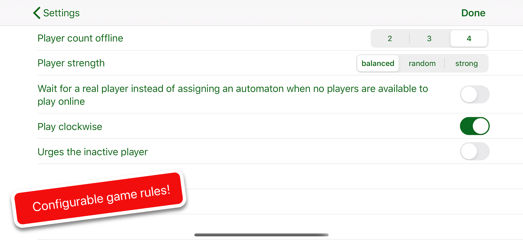 - Có hai chế độ chơi ngoại tuyến (Trò chơi đơn và Chế độ tính điểm) để chơi với rô-bốt