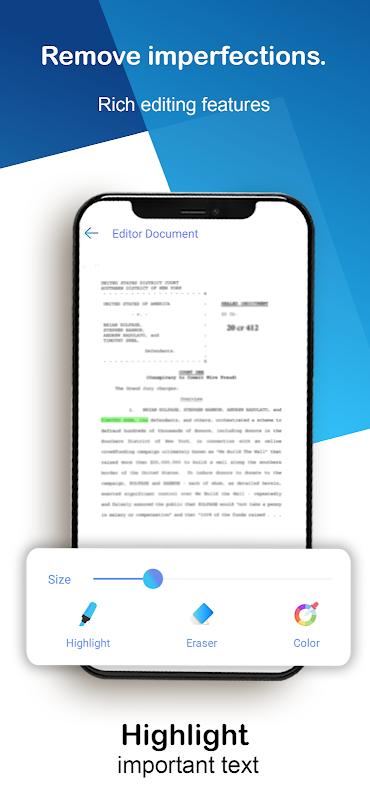 Quick Doc Scanner sẽ biến thiết bị của bạn thành một văn phòng kỹ thuật số mạnh mẽ và giúp bạn trở nên hiệu quả hơn trong công việc cũng như cuộc sống hàng ngày. Với các tính năng thông minh như hiệu chỉnh phối cảnh, cắt xén tự động, OCR, bạn có thể tạm biệt những cỗ máy sao chép khổng lồ và nặng nề và tải ứng dụng máy quét cực nhanh này miễn phí ngay bây giờ. Tải xuống ứng dụng máy quét này miễn phí để quét, lưu và chia sẻ ngay lập tức bất kỳ tài liệu nào ở định dạng PDF, JPG hoặc TXT.