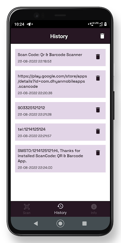 - Nhấn vào Biểu tượng Lịch sử để nhận danh sách tất cả dữ liệu mã đã quét