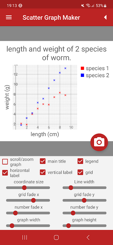• Lưu đồ thị phân tán vào bộ nhớ điện thoại để sử dụng cho công việc của bạn.