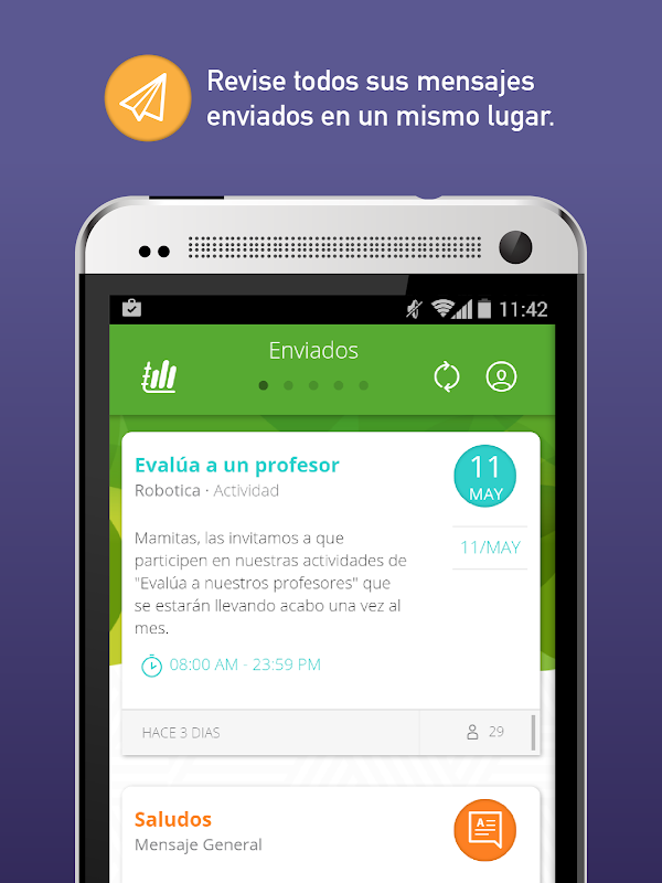 Envíe la información del colegio a un estudiante o a todo el colegio desde la palma de su mano.