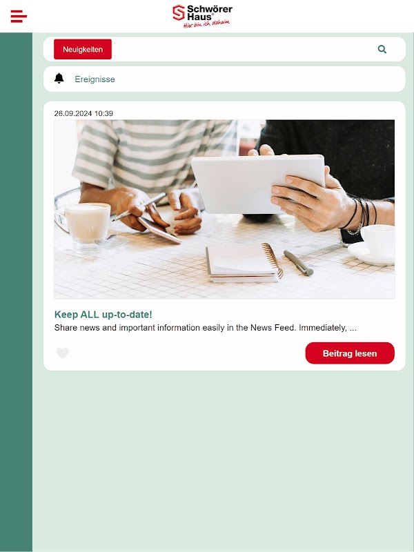 Tìm hiểu về tất cả các tin tức và thông tin quan trọng từ công ty chúng tôi với ứng dụng SSchwererInside dành cho nhân viên Schwörer mới - bất kỳ lúc nào và thuận tiện trên điện thoại thông minh của bạn.