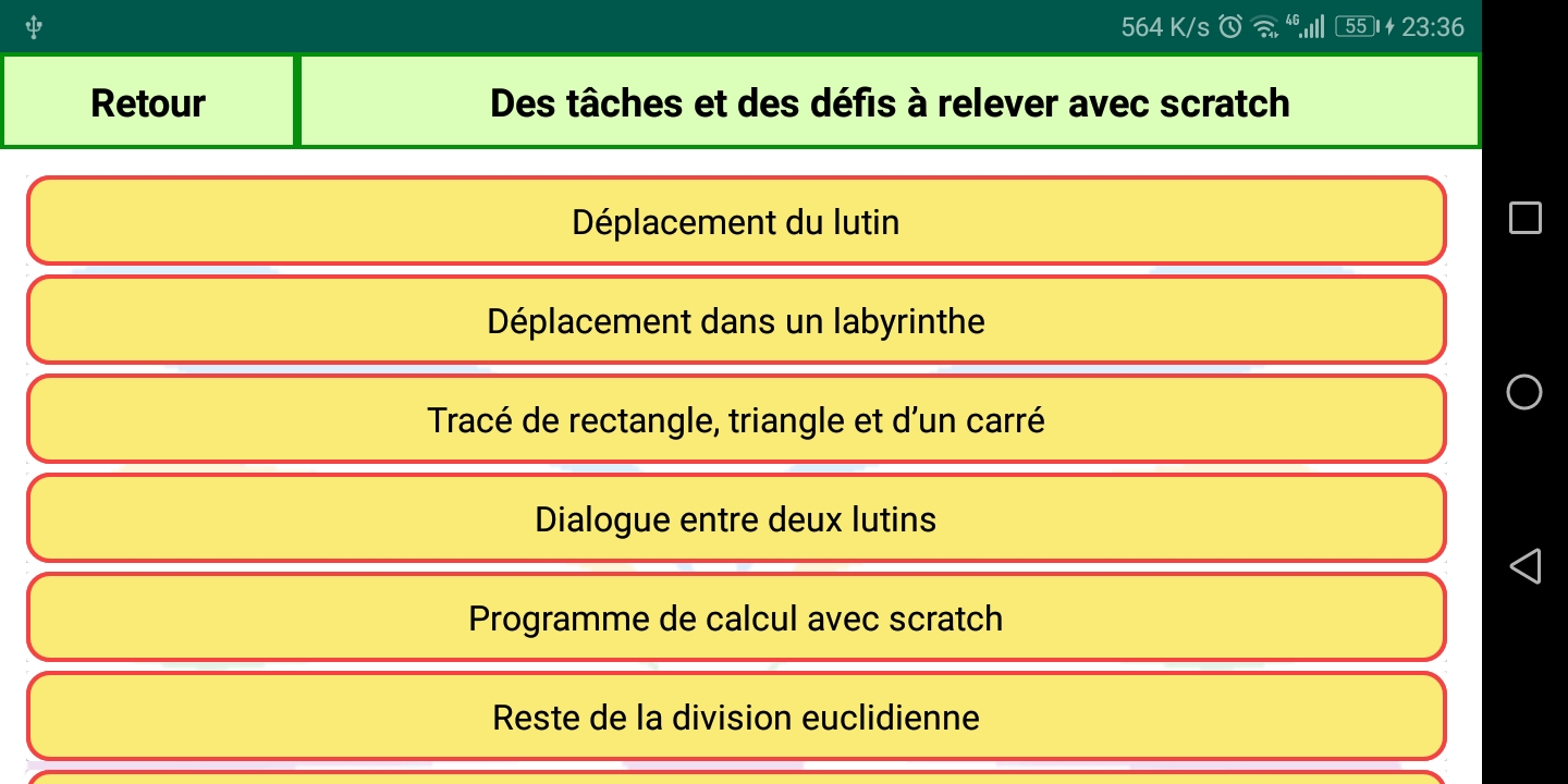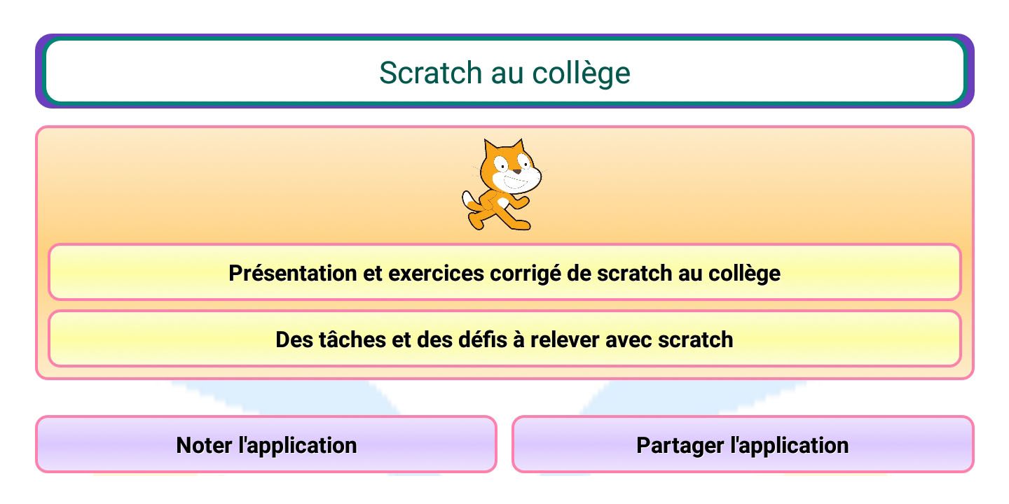 Ứng dụng này có chứa các hướng dẫn Scratch cho sinh viên đại học, Tổng quan về Scratch với các bài tập và nhiệm vụ được sửa chữa mà không cần internet.