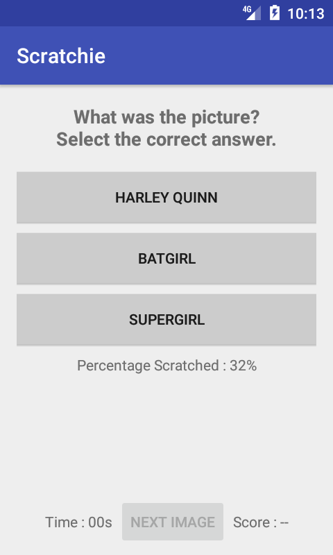 It’s quick and easy to play. No instructions required. Scratch away the blue and memorise the picture. You have less than 5 seconds. Then guess what it is from the three answers that are provided.