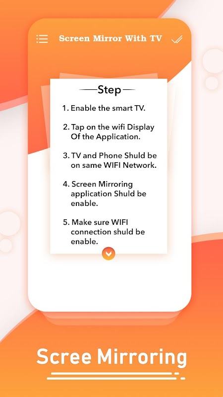 Screen Mirroring with TV: Smart View will help you to share, display and mirror your android phone or tab's screen on smart TV.