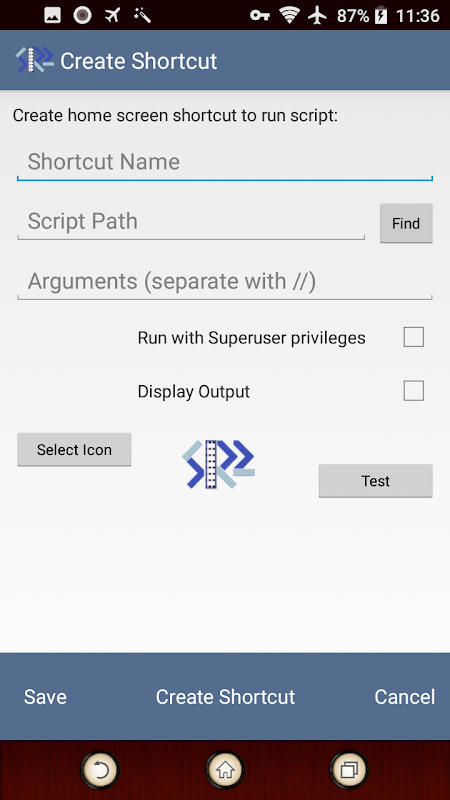 Script Runner 2 cho phép bạn tạo các phím tắt màn hình chủ sẽ thực thi các kịch bản lệnh của bạn, nhắc cho các đối số nếu được yêu cầu.