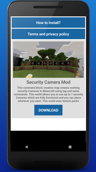 The app Security Camera Mod Minecraft helps you to protect your home from unwanted guests by adding vigilant cameras.