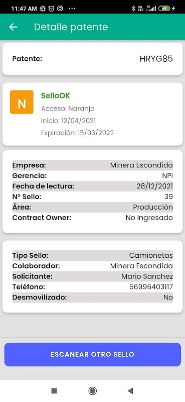 La aplicación está orientada al constante control de códigos vigentes dentro de una asociación. Cada vehículo tiene asociados muchos sellos, por ende el aplicativo se utiliza para monitorear la vigencia de cada sello relacionado con cada vehículo, dando una respuesta que cubre las necesidades de saber: