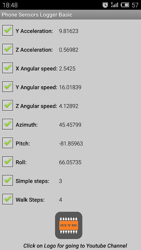 Very simple use app, You can select the sensors that you want to log and view, select the time interval log, and click log button.
