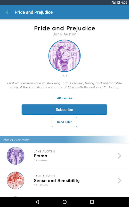 Serial Reader giúp bạn đưa văn học cổ điển vào cuộc sống bận rộn của mình: Chọn từ hơn 900 cuốn sách cổ điển và nhận số mới mỗi ngày. Mỗi vấn đề có thể được đọc trong 20 phút hoặc ít hơn. Đọc những cuốn sách cổ điển hay nhất trong thời gian rảnh rỗi của bạn!