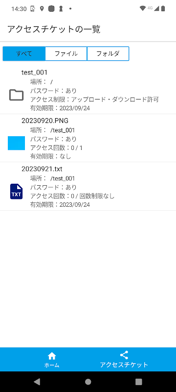 ・ Phiếu truy cập: Đặt các giới hạn truy cập như mật khẩu và số lần tải xuống cho các tệp và thư mục,