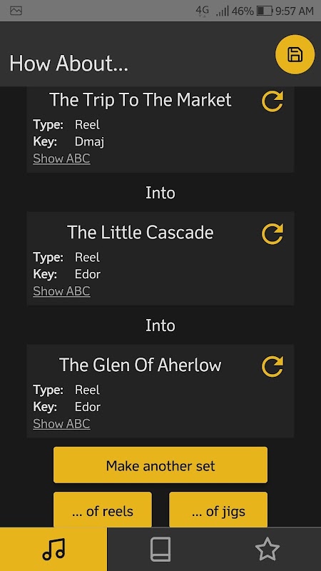 -Show you the ABC notation of all the tunes in your tunebook;