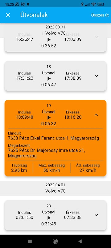 - thông tin liên quan đến các tuyến đường được thực hiện trong khoảng thời gian nhất định có thể được phân tích