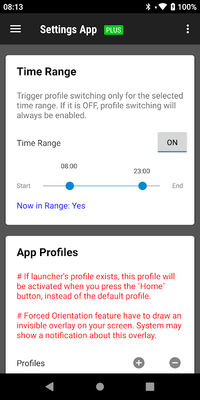 You can configure your apps behavior by adjusting the profile in this app. For example, when you are reading news and watching video, you might want to adjust to a specify orientation and keep the screen awake.