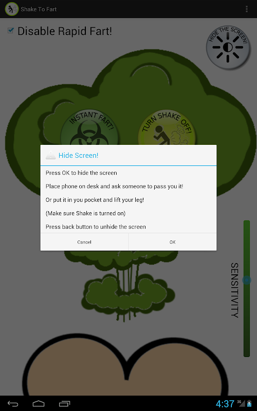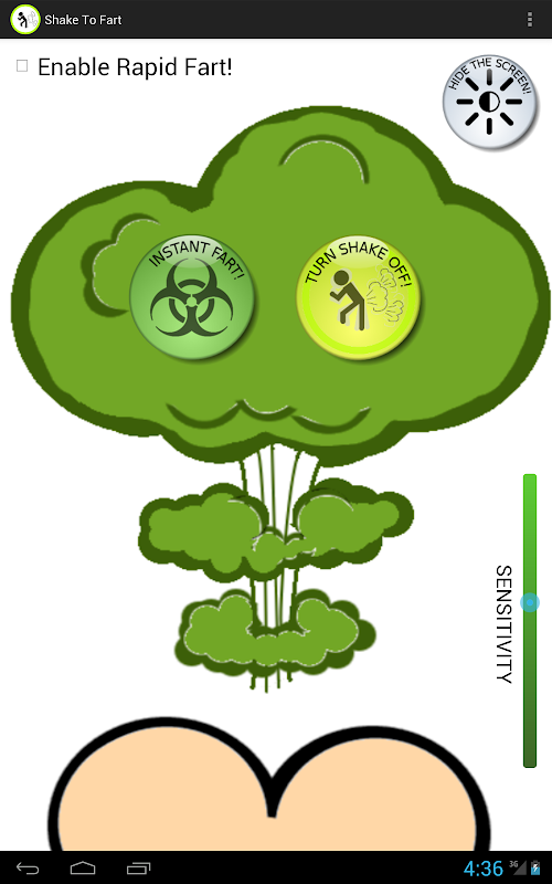 Shake To Fart works by detecting movement with your phones accelerometer, if it detects movement it will play a random fart sound!