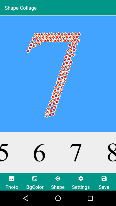 Using this Shape collage app and select random photos from Gallery and make shaped collage, change background color and decorate as per your liking.