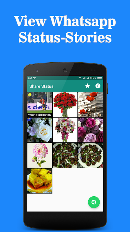 Small and faster App for Sharing or saving Whatsapp status images and video.