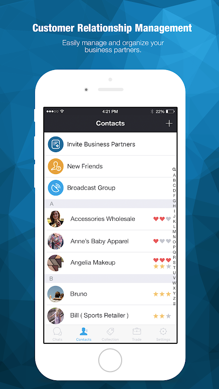 The advanced chat function and the dynamic viewing function dedicated to business people can efficiently help you complete sales and procurement.